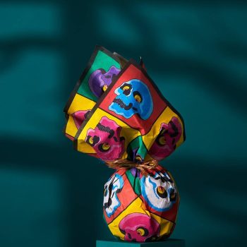Fill this Halloween Knot Wrap with seasonal Lush treats and pop it on your friends porch in the night for a surprise Boo Basket! It’s made from recycled polyester, so it can be reused again and again — it has at least nine lives.